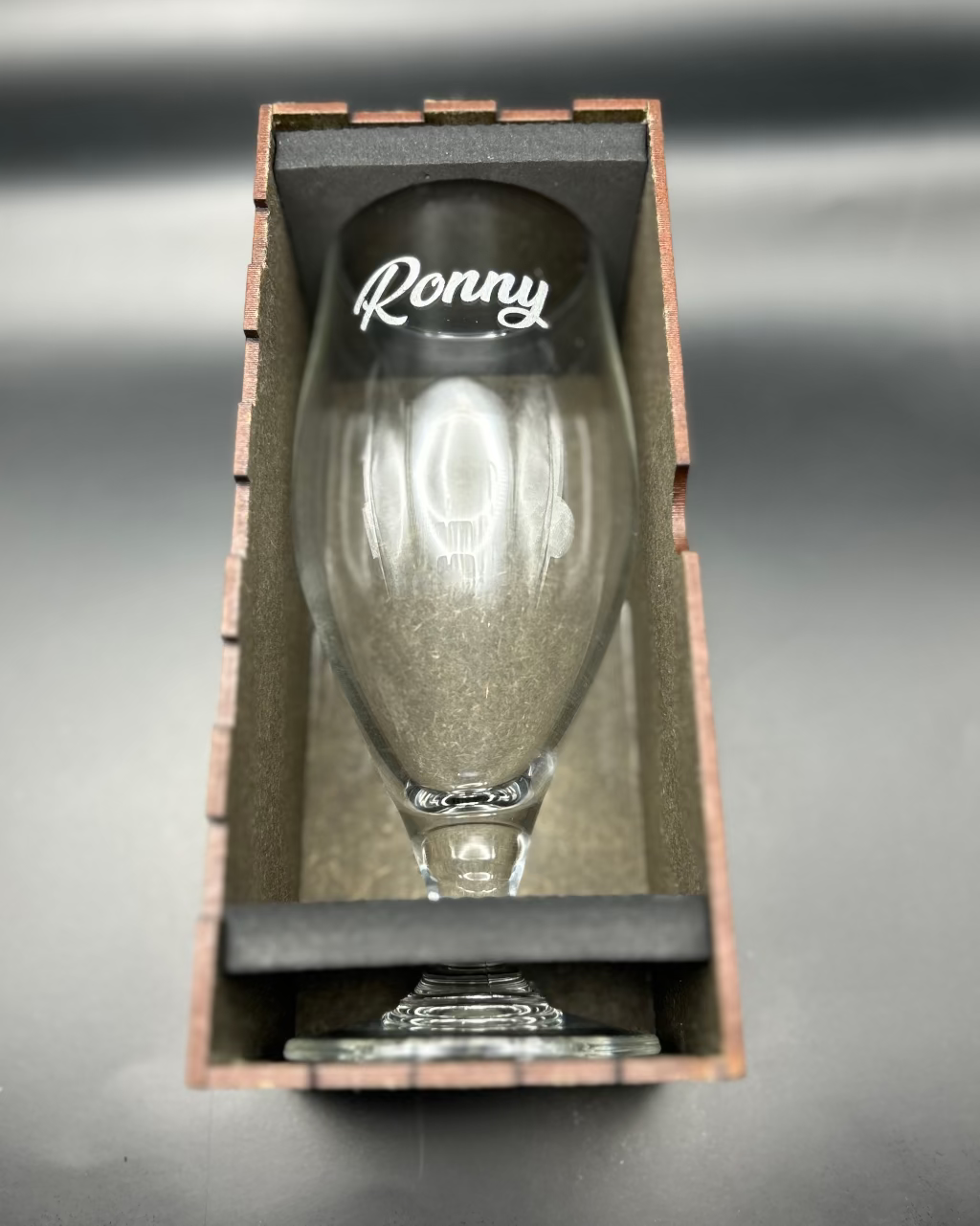 ØLglass med valgfritt navn og eventuelt gaveboks,